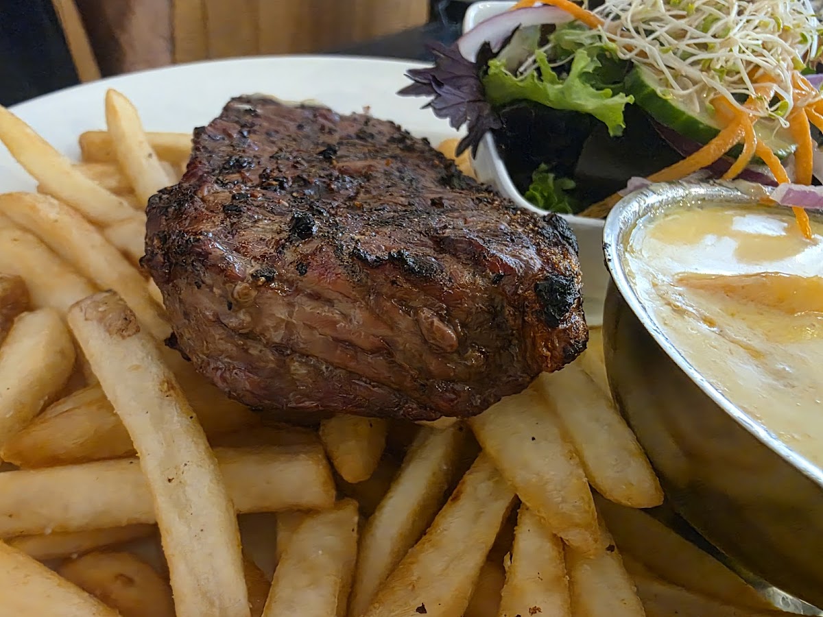 The sticky beef ribs were absolutely delicious – tender, juicy, and packed with flavour. The portion size was generous and easily enough to share between two people. Served with fresh salad and crispy chips, it made for a well-balanced and satisfying meal. Definitely a must-try if you love hearty, flavoursome food
