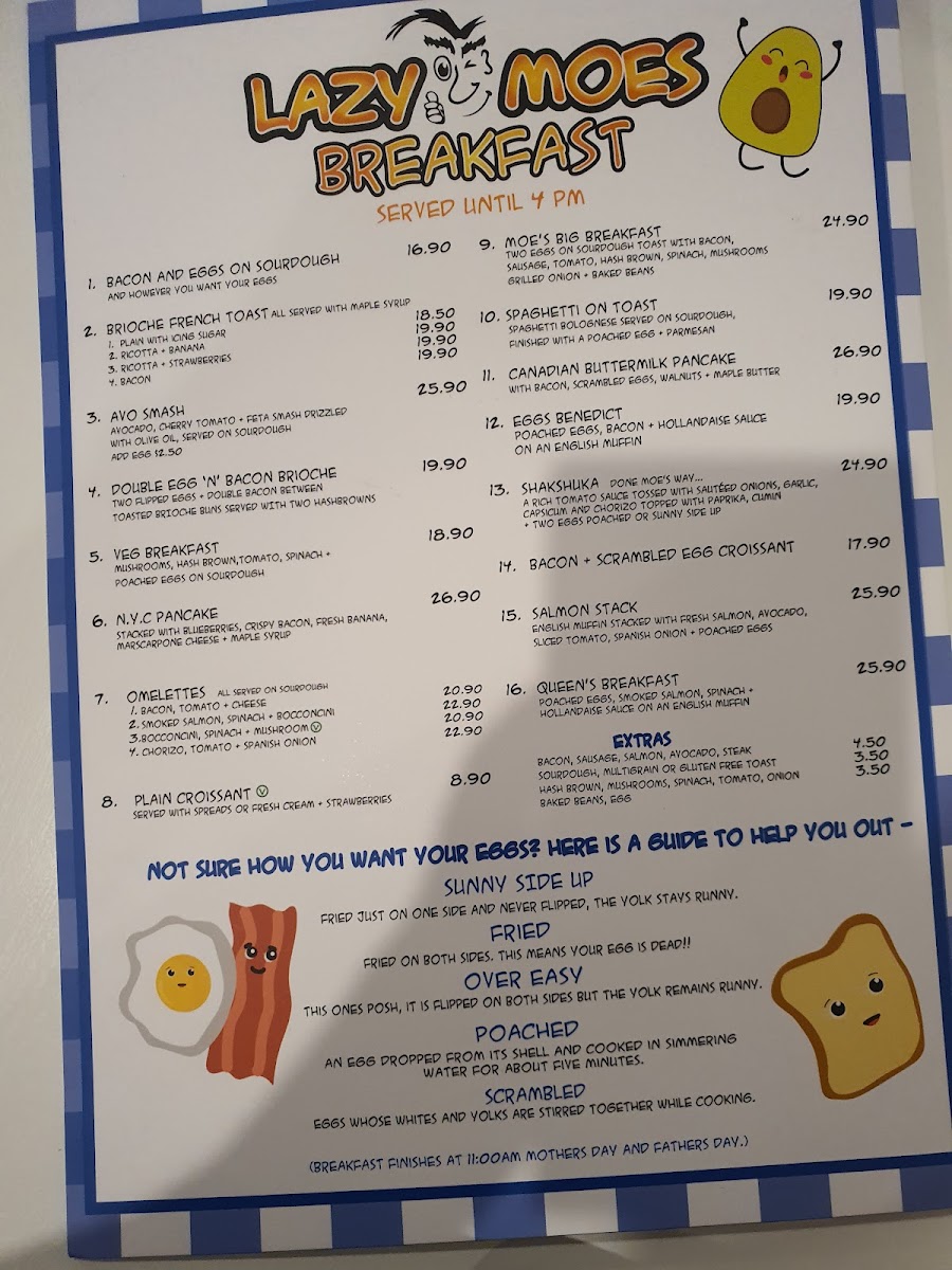 The menu at Lazy Moes Mildura offers a relaxed selection of comforting dishes that suit casual dining any time of day. Whether you're stopping by for a hearty morning meal or settling in for a satisfying lunch or dinner, the range serves up familiar, well-sized portions with a laid-back vibe.